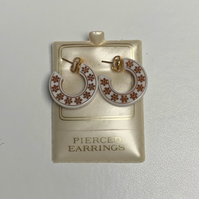 White and Brown Floral Hoop Earrings